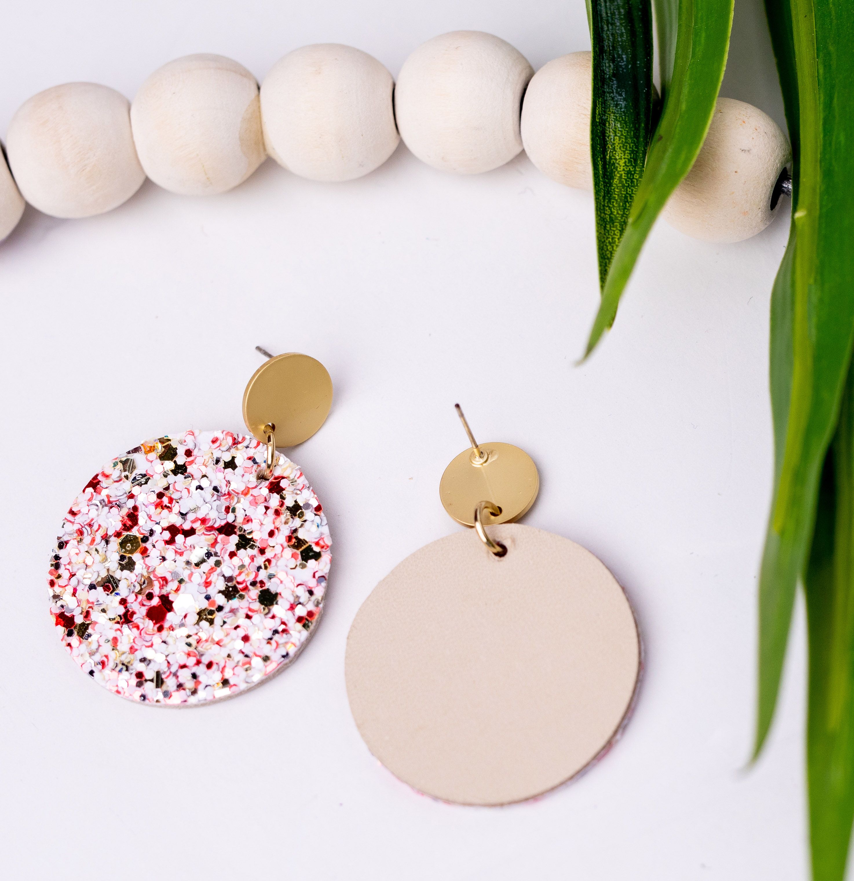-Chunky glitter applied to genuine leather