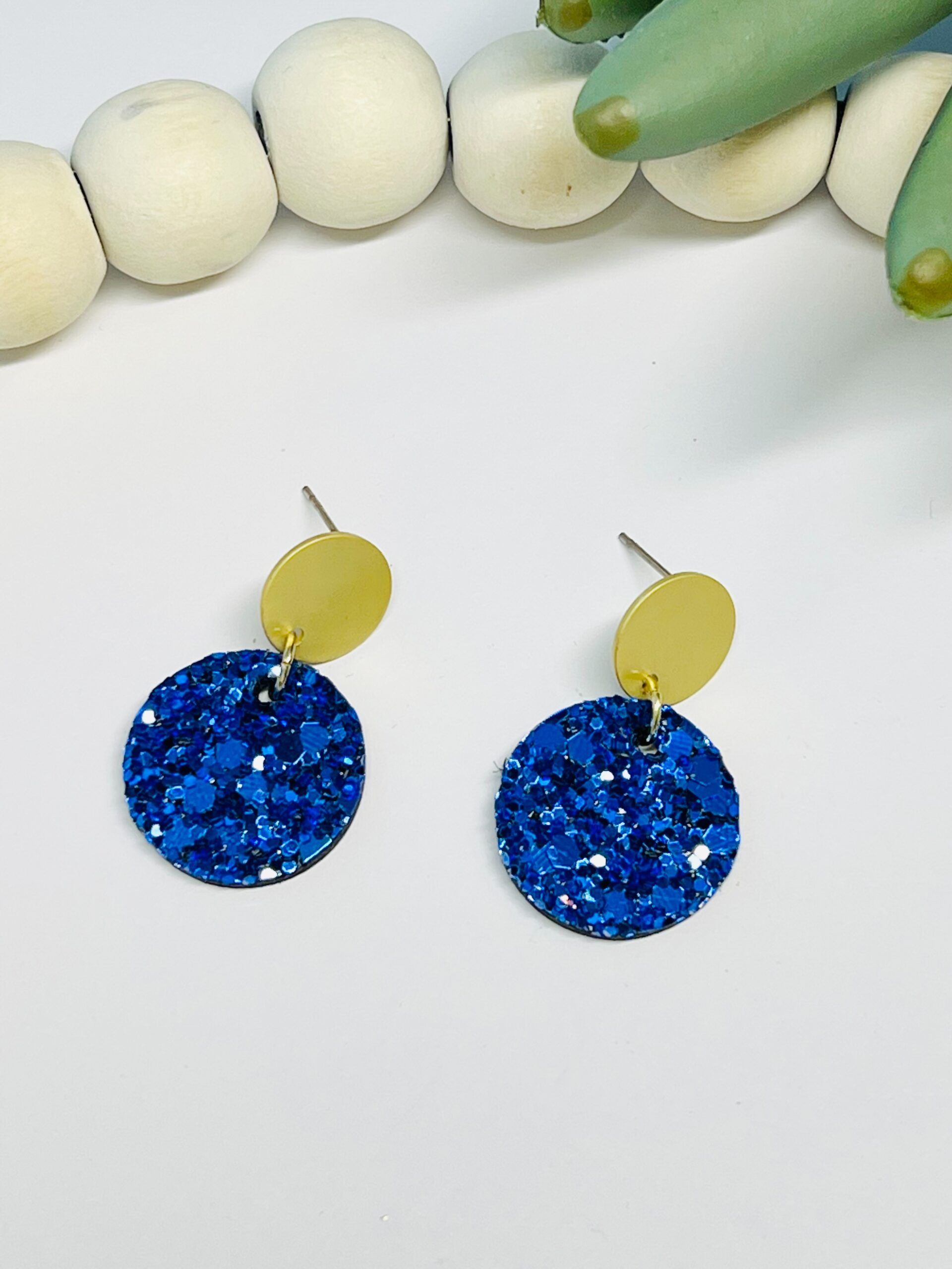 Blue Chunky Glitter Small Circle with Gold
